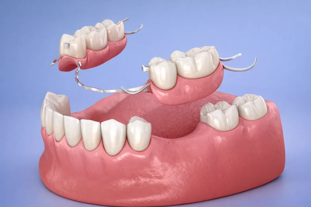 A Removable Partial Denture (RPD) is a dental prosthesis that dentists design to replace missing teeth in a patient’s mouth. Firstly, RPDs consist of artificial teeth attached to a metal or acrylic framework that can be removed for cleaning or as needed. Also, when some natural teeth are left in the arch, these removable appliances offer a cheap and simple way to restore oral health and aesthetics.